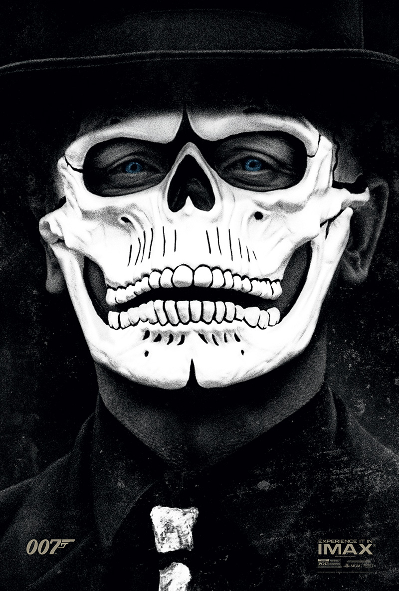 James Bond défilant grimé en squelette le Jour des Morts, inspire une affiche IMAX de Spectre.