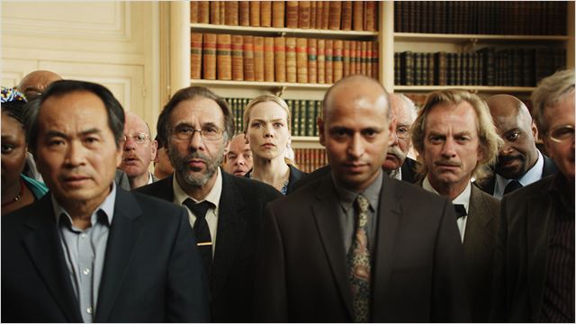 Notre avis : 1001 grammes rappelle dans son principe La Constante de Zanussi : l’opposition entre un monde scientifique cohérent et la vie imprévisible sert de base dans les deux cas à un scénario fondé sur un trajet personnel. Ici, c’est Marie que l’on suit avec sa vie monotone, ponctuée de fondus au noir qui séparent des journées répétitives. Entre son travail et son ex qui vient chercher ses affaires au compte-goutte, il n’y a de place que pour des soirées solitaires, dans lesquelles le vin et la cigarette tiennent lieu de repas. Son monde est étriqué, à l’image de ce couloir étroit, digne de Tati, où elle va fumer. Ce que nous montre toute la première partie du film, c’est un espace inadapté, trop grand ou trop petit, avec des cadrages qui la mettent toujours à part. Il s’agit d’un espace froid, aseptisé, dans lequel dominent le blanc et le bleu. Cela donne quelques trouvailles visuelles : on pense encore à Tati en voyant le défilé de scientifiques abrités par des parapluies bleus ou ce plan étrange dans lequel elle est masquée par un globe. Marie arpente, à pied ou dans sa voiture électrique (bleue, elle aussi), cet univers clos et étouffant, dominé par des questions fondamentales (faut-il laver le kilo ou pas ?) et la volonté de restreindre le hasard : elle travaille entre autres sur les boules de loto. Tout doit y être exact et précis afin d’obtenir la certification.