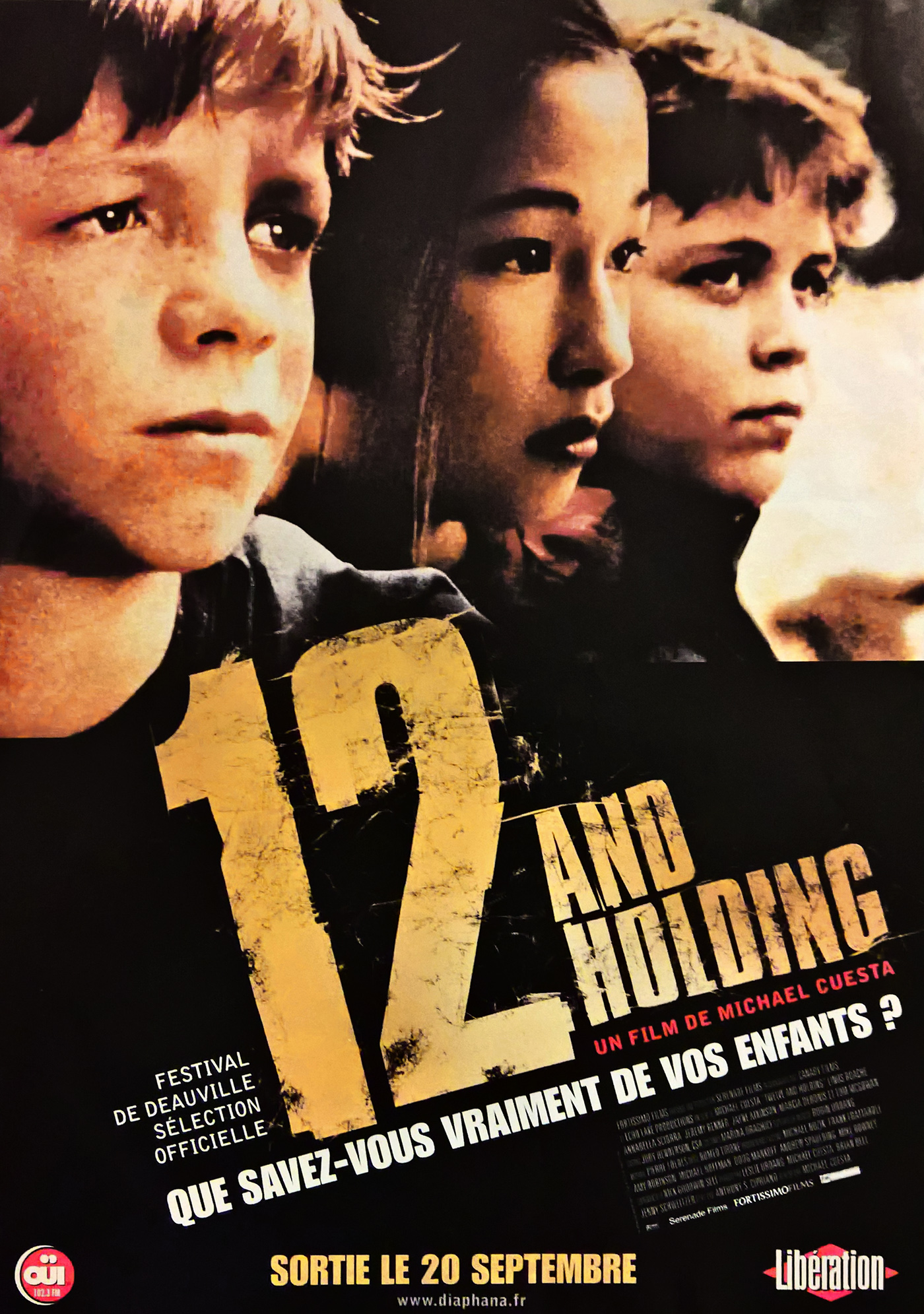 Notre avis : Sans doute moins direct, moins dur que L.I.E., son premier film, 12 and Holding poursuit, en reprenant les mêmes thèmes, la réflexion de Michael Cuesta sur la sortie de l’enfance. Comme dans son premier opus, ses héros, pourtant des gamins, font preuve d’une sensibilité à fleur de peau, d’une liberté de penser et d’une intelligence remarquables, mais jamais irréalistes. Face à des parents qui ne comprennent pas leurs douleurs, qui semblent aveugles au changement qui s’effectue en eux, Jacob, Malee et Leonard, les héros de 12 and Holding, se retrouvent livrés à eux-même, en rébellion consciente ou inconsciente face au modèle parental.