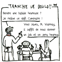 Et là, en revanche, l’émotion est bien présente avec les clients à qui Viannay doit faire bénéficier de ses prouesses. Les idées originales arrivent et on se prend vite d’amitié pour ces gens perdus, dans le deuil ou la détresse, et pour qui la cuisine peut être un moment de paix, de douceur, d’apaisement. Même s’il n’est que passager, c’est plus que ce qu’ils espéraient trouver. Même si l’humour reste toujours présent, de manière fort discrète - ce qui est très agréable - la tristesse et la douleur ne sont pas absentes de cette BD. Mais ce ne sont pas les émotions que va connaître le chef. Ce sont celles de ses clients d’un repas. Comme si Viannay était le passeur, celui qui nous fait rencontrer tous ces gens et surtout celui qui leur offre l’inattendu et même l’espoir dans un instant simple de bonheur gastronomique.