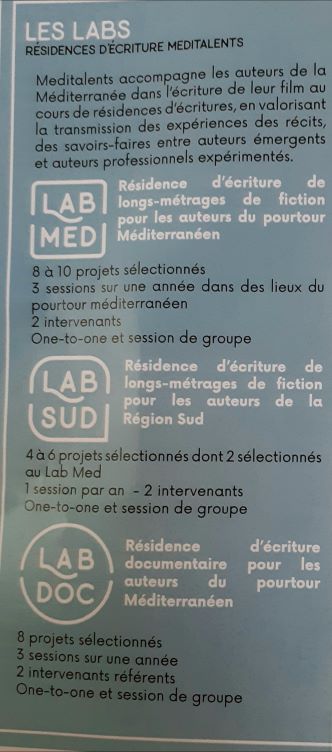Meditalents est une association agissant dans le domaine de l’écriture et du développement de projets cinématographiques, signé par des auteurs de tous les pays de la Méditerranée. L’association organise des résidences d’écriture et accompagne les auteurs jusqu’à la production.