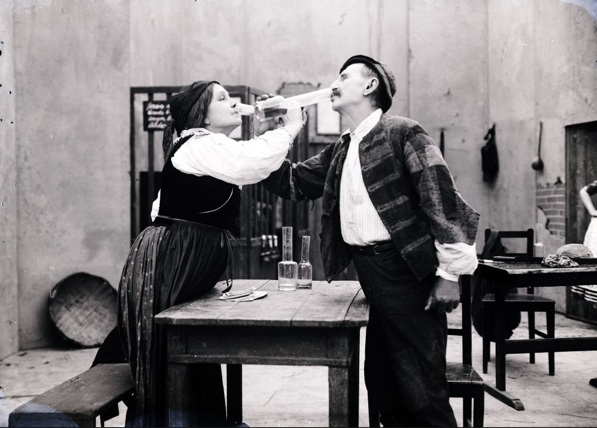 Tiré d’une pièce de théâtre célèbre et interprété par des gloires de la scène hongroise, le film revendique cette origine et s’en ressent un peu dans ses moments les plus dramatiques où guette une grandiloquence contrôlée, et assez vite réfrénée d’ailleurs, les acteurs s’en tenant plutôt à un jeu sobre d’obédience naturaliste, d’une intensité remarquable mais nullement crispée chez Mari Jászai (la mère) et Lili Berky (Lizska), plus détendue chez les seconds rôles comiques (le vagabond, la mère et le beau-père du jeune homme) ou chez le fringant Mihály Várkonyi* (Miklós), notamment dans la scène où il s’ébouillante en faisant sa cour en tablier de cuisine.