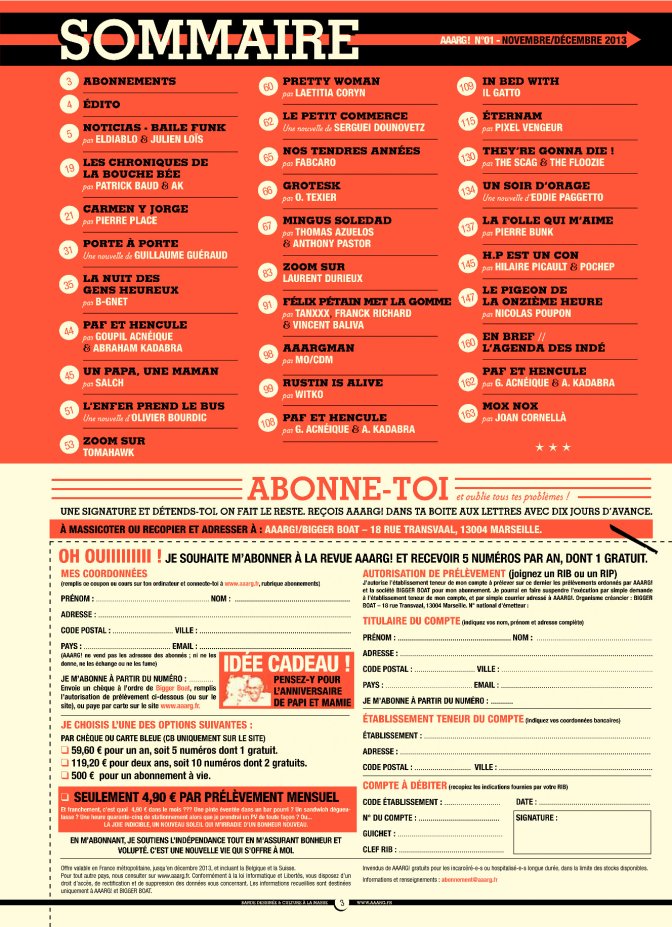 À la rédaction, on se revendique des cultures populaires : on vient du monde de la bande dessinée bien sûr, mais aussi de la musique, du cinéma, du graphisme... On est curieux, et comme tous les gens curieux on l’est de tout. Pourtant, et c’est paradoxal, aujourd’hui le monde de la culture est très balisé, le mélange des genres est rare. Avec AAARG !, on prend le contre-pied de ce statu quo, on veut en sortir, avec une publication d’ampleur, à grand tirage. Et forcément indépendante : notre objectif est d’être sans concession et de diriger la revue comme on l’entend, entourés d’auteurs qui ont à la fois le talent, l’audace et la gouaille qui correspondentau projet éditorial.
