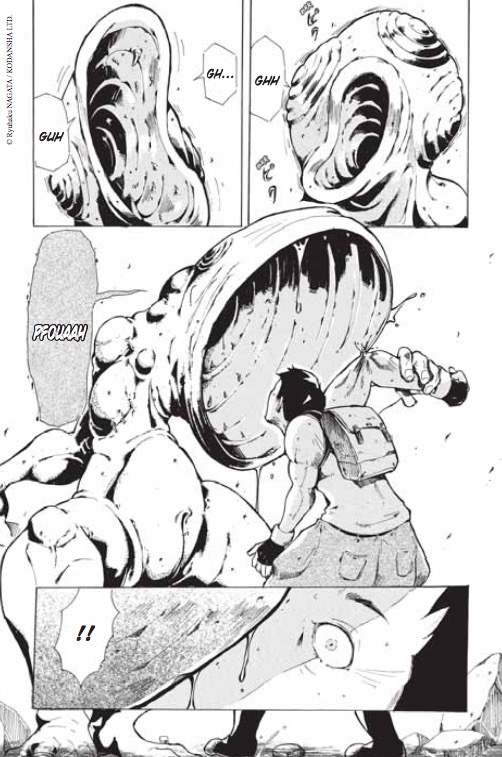 À mi-chemin entre les films Saw, le jeu Portal et l’ambiance de Silent Hill, Abyss est un nouvelle série Seinen qui mêle réflexion et horreur, psychologie et énigme. Le héros Hibiki Dan, est un adolescent qui a l’air normal, sauf qu’il est très rapide... à la détente. Le concept de "Trigger" est assez sympa en soi : chaque survivant est doté à son réveil d’une gâchette portative, qui donne à son porteur un pouvoir exceptionnel, mais de façon très courte et limitée. Ces gâchettes sont un peu frustrantes. On peut par exemple se téléporter, mais seulement dans un endroit que l’on voit, faire léviter un objet, mais très peu de temps et sans qu’il soit trop lourd... Pour vaincre des monstruosités quasi invulnérables, sans yeux mais avec des dents, un seul trigger ne suffit pas. La combinaison des survivants est donc indispensable, et pour passer les différentes étapes des abysses, il faut combiner vite.