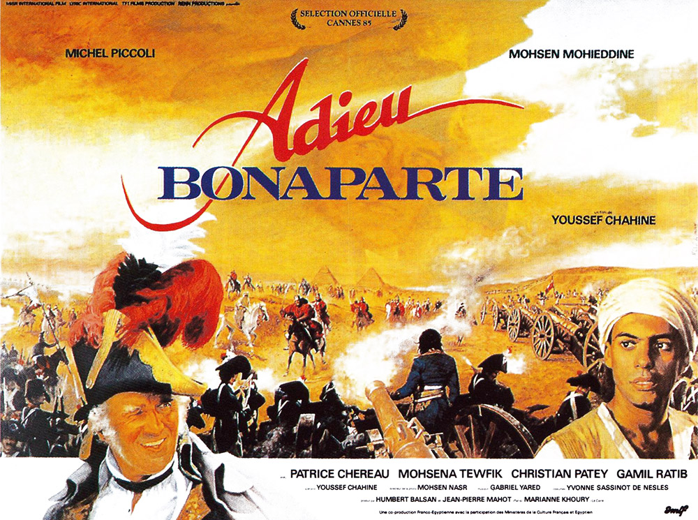 Notre avis : L’accueil du film fut en 1985 assez mitigé et le nombre d’entrées dut décevoir Chahine, qui avait bénéficié de moyens conséquents pour réaliser sa fresque sur la campagne d’Égypte. Mais ceux qui attendaient une grande épopée historique, comptaient sur l’assagissement d’un cinéaste paralysé par la reconstitution ou espéraient une œuvre ouvertement politique en ont été pour leurs frais. Certes, le combat entre le sabre et la pensée, entre un Napoléon obtus que Patrice Chéreau interprète en pantin névrosé et un général Caffarelli amoureux des savoirs et des cultures, ce conflit théorique existe bien, et il est même de temps en temps souligné lourdement. Si c’était le projet unique d’Adieu Bonaparte, le métrage serait sec et réduit à des oppositions schématiques.