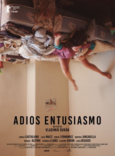 Adiós entusiasmo est un film au mystère absolu. Les dialogues s’enchaînent entre les enfants et la mère dont on ne perçoit que la voix lointaine, séparée d’eux par le mur de la salle de bain. La privation d’amour maternel qu’elle leur fait subir semble une sorte de métaphore anxiogène de la maltraitance commise sur des enfants, l’art et la création musicale ou théâtrale devenant l’unique espace de liberté morale et affective pour la fratrie. Curieusement, personne de l’extérieur ne daigne mettre à mal ce plafond de verre qui sépare les enfants de leur mère, illustration peut-être supplémentaire de la puissance avec laquelle certaines familles parviennent à taire les maltraitances qu’elles font subir à leurs enfants. Mais tout cela demeure de l’ordre de la supposition. Vladimir Durán n’apporte pas de réponses évidentes et marquées à cette situation. La mère lutte contre toutes les conventions, s’évertuant à nourrir l’étrangeté de sa réclusion, jusqu’à ce qu’elle semble devenir une sorte de fantôme à elle-même et à ses propres enfants, malgré l’anniversaire que la famille a organisé en son honneur.