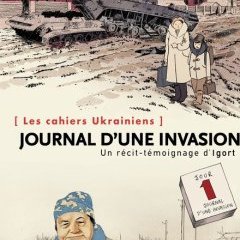 En fin d’émission, Frédéric Michel notre chroniqueur du site internet A voir à lire dont Affinités Culturelles est partenaire, reviendra sur Les cahiers Ukrainiens. Journal d’une invasion, d’Igort, chez Futuropolis et nous parlera des BD russes et ukrainiennes, notamment Captain Ukraine, ou de l’excellente BD La dernière artistique soviétique de la dessinatrice russe en exil Victoria Lomasko publié chez The Hoochie Coochie.