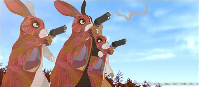 L’argument : Une légende raconte qu’à la nuit tombée, une prestigieuse école de Tokyo devient le royaume de fantômes et autres créatures invraisemblables, les "Midnighters". Lors d’une journée portes ouvertes, trois petites chipies qui n’ont peur de rien pénètrent dans l’ancienne salle des sciences condamnée pour travaux et y rencontrent Monsieur Kunstlijk, l’écorché d’anatomie de l’école, et son ami Goth le squelette. Pas effrayées pour deux sous, elles vont relooker M. Kunstlijk façon Picasso pendant son "sommeil". Après avoir vu le résultat le soir même, l’écorché les invite à l’école pour leur faire passer une nuit de terreur et envoie trois lapins frappadingues armés jusqu’aux dents pour les ramener ! Et voilà les trois gamines entraînées dans une série d’aventures improbables, mais la bataille ne fait que commencer et n’est pas le plus monstrueux celui que l’on croit...