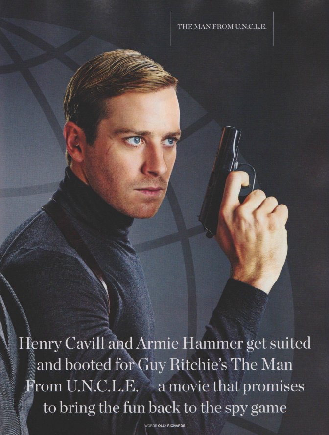 Notes : Henry Cavill raccroche les collants pour jouer les espions dans le dernier long-métrage de Guy Ritchie (Sherlock Holmes), Agents très spécieux Code U.N.C.L.E, un thriller adapté de la série télé des années 60, Des agents très spéciaux de Norman Felton et Sam Rolfe.
