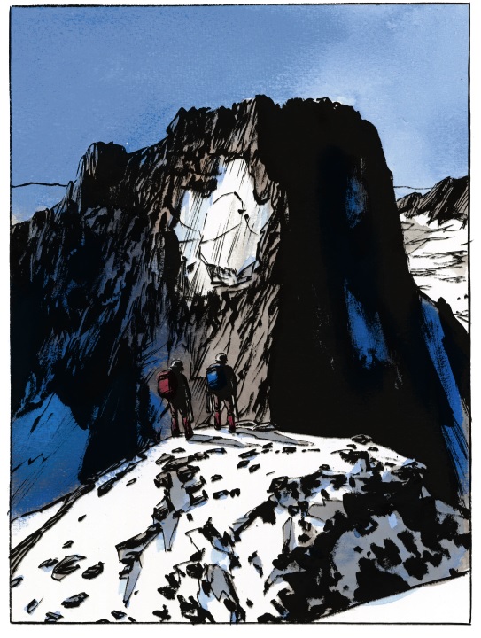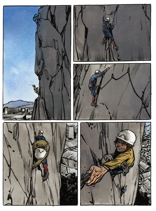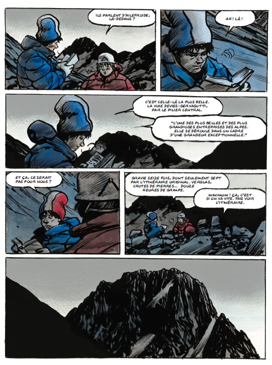 Ce livre lui permet sans doute de lier ces deux amours et d’ailleurs cela apparaît comme une évidence. La bande dessinée est ce lieu où les artistes créent des mondes sans limite et la montagne est ce lieu sans limite qui fait de certains hommes ce qu’ils sont. Une BD dure comme une paroi rocheuse, passionnante comme une étendue de neige, envoûtante comme l’est la montagne.