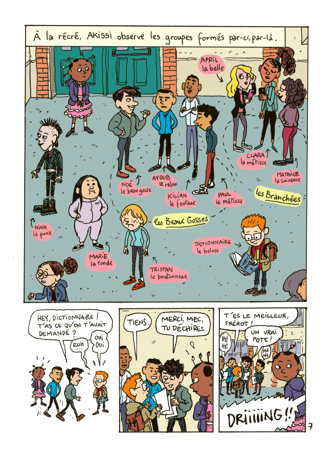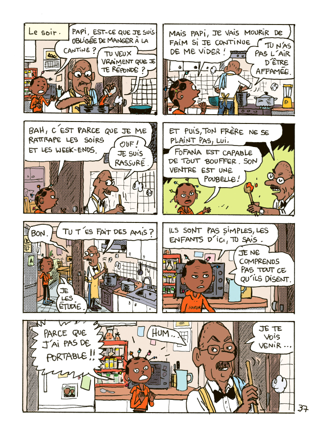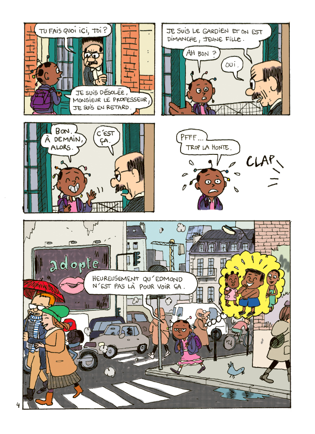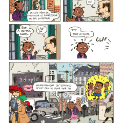 Le titre suggère d’ores et déjà que la jeune fille s’acclimate au point d’être « de Paris ». Et c’est là toute la force de ce premier tome : Akissi se heurte à des codes, les comprend, s’y adapte, les fait siens et en transforme certains.
