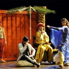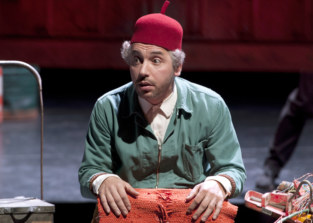 Ali Baba est clairement un spectacle polymorphe, qui entrelace la danse, le rire, la poésie et le drame avec une fantaisie réjouissante. Dans le public, les rires sont timides mais bien réels. Sur scène, les acteurs sont vifs, spontanés, totalement libérés par une mise en scène qui laisse à l’imaginaire de chacun la possibilité de s’exprimer. Le décor, à la fois composé d’éléments doux (la maisonnette, au design esthétique et original) et repoussants (la ferraille, le container), offre l’espace nécessaire aux personnages pour déambuler avec énergie et vitalité. Si l’ensemble est très bavard, (les répliques sont souvent cinglantes et cocasses, faisant la part belle aux habituels clichés du monde arabe), Ali Baba reste surtout un spectacle visuel, coloré et mouvementé, qui ose confondre différents lieux en un seul pour donner au spectateur une omniscience venant accentuer l’absurdité de nombreuses situations. Au centre de ce conte agité, les acteurs brillent par la justesse de leur interprétation – mention spéciale à Thomas Morris, qui joue l’exubérant Cassim, frère d’Ali, sans jamais tomber dans l’excès.
