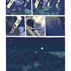 Critique : Alouette est un album inégal et cela rend compte de l’une de ses qualités : l’énergie. Des corps paraissent parfois mal proportionnés, des attitudes surprennent (Alouette sourit à un moment tragique), certaines situations sont vite expédiées… et cela suggère que l’essentiel n’est pas là, mais dans la dynamique du récit. Ces petits défauts contribuent à alimenter le bouillonnement de vie qui caractérise Alouette et dont il est question tout au long de cette histoire. Ce personnage malmené et cabossé par l’existence s’en sort manifestement par la colère, voire par la rage. Découpage, mise en page et dessin paraissent retranscrire et transmettre cela.
