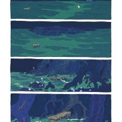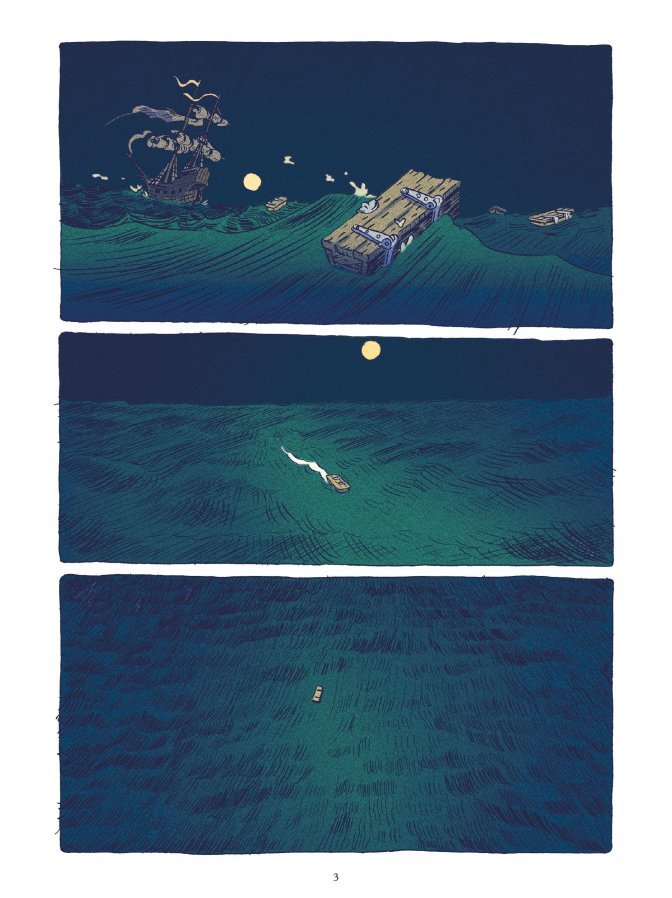 Andréa Delcorte signe un récit singulier, à la croisée de la robinsonnade et des aventures fantastiques d’un Hayao Miyazaki, alternant les univers (ville peuplée et île déserte), mais s’attachant toujours à la lutte des personnages pour leur survie, ce jusqu’à la fin de l’histoire.