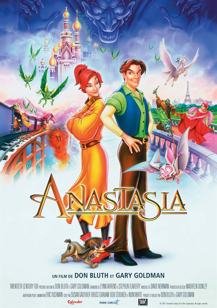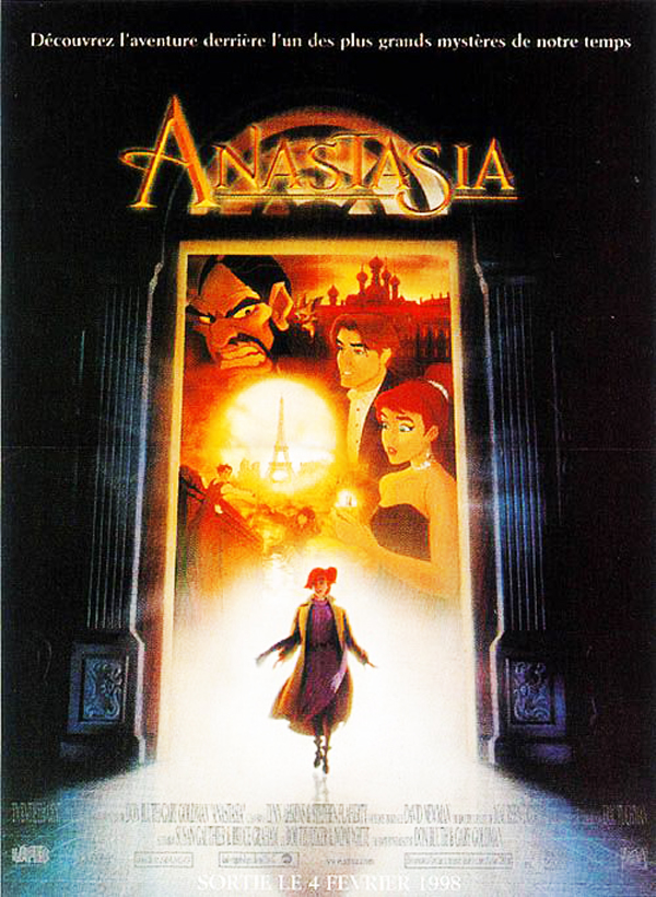 Résumé : En 1917, la Révolution Russe éclate. Le traitre Raspoutine est bien décidé à éliminer tous les Romanov. Anastasia, la plus jeune enfant de la famille royale, parvient à s’échapper grâce à Dimitri, un garçon de cuisine. Dix ans plus tard, réunis par le destin, ces derniers partent pour un extraordinaire voyage qui les emmènera de Saint Petersbourg à Paris, poursuivis à leur insu par l’infâme Raspoutine et sa délirante chauve-souris Bartok...