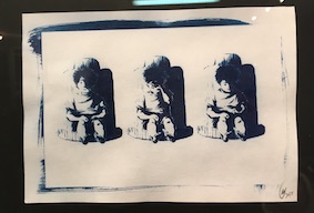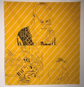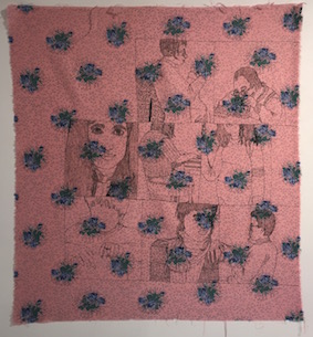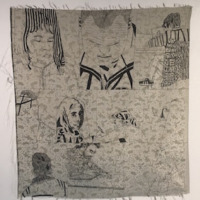La première a tout juste 21 ans, et dessine sur des carrés de tissu à motifs des galeries de personnages, l’un endormi, d’autres concentrés sur leur travail ; souvent de dos, parfois inachevés. Règnent sur ces planches subtiles un calme apaisant, et le charme d’un trait qui considère ses matières.