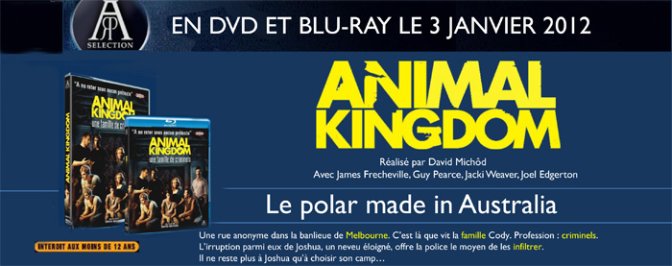 Sorti en avril 2011, le cultissime Animal Kingdom aura dû attendre 8 mois avant de paraître en DVD/Blu-ray, au lieu des trois généralement de coutume entre une sortie salle et une sortie vidéo.