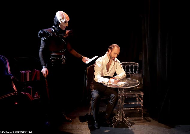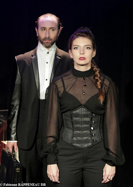 Notre avis : Lorsque l’on descend l’étage et demi qui nous sépare de la scène, quelle n’est pas notre surprise de nous voir scrutés, dès notre arrivée, par cet étrange personnage affublé d’un drôle de costume noir, qui le fait ressembler à un oiseau de mauvais augure. Comme si, à peine jouée, la pièce était déjà scellée. Comme si, à l’image du trajet d’Anna, nous allions nous-mêmes aux Enfers. L’issue sera funeste ou ne sera pas.
