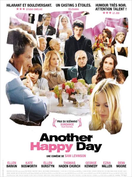 Notre avis : Les réunions de famille au cinéma, on a déjà donné. Crêpages de chignon, rancœurs larvées et petites hypocrisies en série sont souvent les prétextes à un grand dynamitage des valeurs sûres, à l’occasion d’anniversaires (Festen), de deuils (La famille Tenembaum, Joyeuses funérailles) ou de noces (le récent Melancholia, le bien nommé Mariages !). C’est cette dernière option que reprend Another happy day, dont on peut saisir l’ironie (un peu facile) dès le titre : dans une bourgade du sud des États-Unis, Dylan s’apprête à passer la bague au doigt de sa bien-aimée, sous l’œil de ses parents qui eux-mêmes, jadis, se sont déchirés et partagés la garde de leurs enfants. Foyers éclatés, tribus plus ou moins recomposées, caractères borderline – parfois à la limite du cas psychiatrique – viennent encore pimenter la fête.