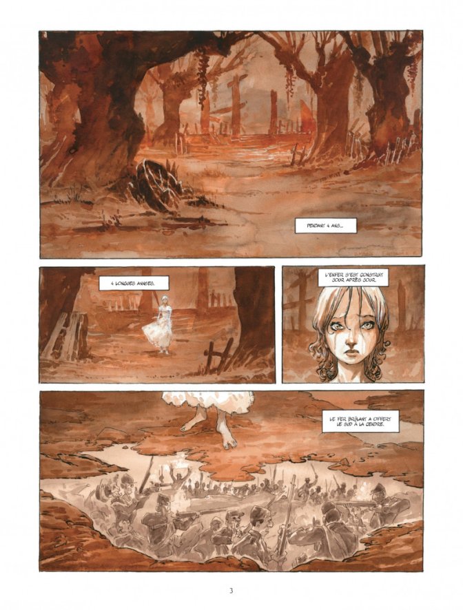 Après l’enfer T1 Le Jardin d’Alice est une histoire dure, mettant en scène des personnages meurtris par la vie, ou plutôt par la guerre. La guerre apporte la mort et la folie dans son sillage, comme l’ont découvert les protagonistes de ce premier tome. Il faudra attendre le second opus pour découvrir la conclusion de cette histoire, mais on angoisse déjà pour nos deux héroïnes.
