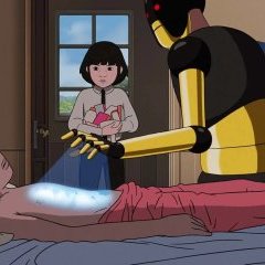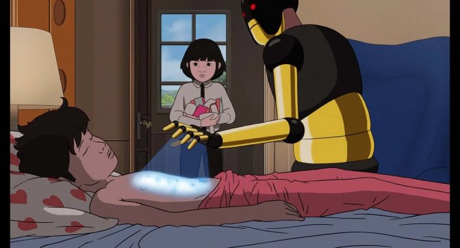 Nous avons là à faire avec un petit joyau de poésie, d’imagination et de beauté. Chaque image est travaillée au détail près, sans tomber dans des fioritures inutiles ou des surcharges narratives. La réalisation va à l’essentiel pour parler d’un monde, le nôtre dans cinquante ans, où, si l’on n’y prête pas garde, les possibles seront certes illimités, mais sans doute au mépris des besoins humains primaires. Iris est en effet gardée par un robot certes inoffensif et protecteur, mais l’image virtuelle de ses parents trop absorbés par le boulot n’apporte pas l’affection dont un enfant a besoin. Trois drôles de personnages, taxés de fous, assistent à la rencontre entre Iris et Arco. Ils sont certains d’avoir enfin la preuve que les gens volent et tentent par tous les moyens de faire reconnaître l’évidence, comme quoi même les techniques les plus avancées n’empêchent pas, et c’est heureux, le doute.