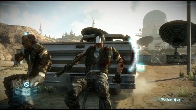 Notre avis : Troisième volet de la série Army of two après le premier titre éponyme et l’épisode Le 40ème jour, Le cartel du diable va nous plonger dans un Mexique gangréné par un puissant cartel de la drogue nommé La Guadaña (traduisez par : la faucheuse). Avec votre équipier vous allez devoir remplir plusieurs missions en accumulant les douilles sous vos pieds. Sous un soleil de plomb, muni de vos armes et à l’ombre des explosions, les membres du cartel vous donnerons pas mal de fil à retordre. Si les missions peuvent paraître un peu répétitives (souvent on avance et on se planque dans les rues ou dans le désert en mitraillant tout ce qui bouge), le challenge parviendra à tenir en haleine les amateurs de TPS (third personal shooter) bourrin entre 8 à 10 bonnes heures de jeu suivant les niveaux de difficulté, ce qui n’est carrément pas mal du tout pour ce type de jeu !