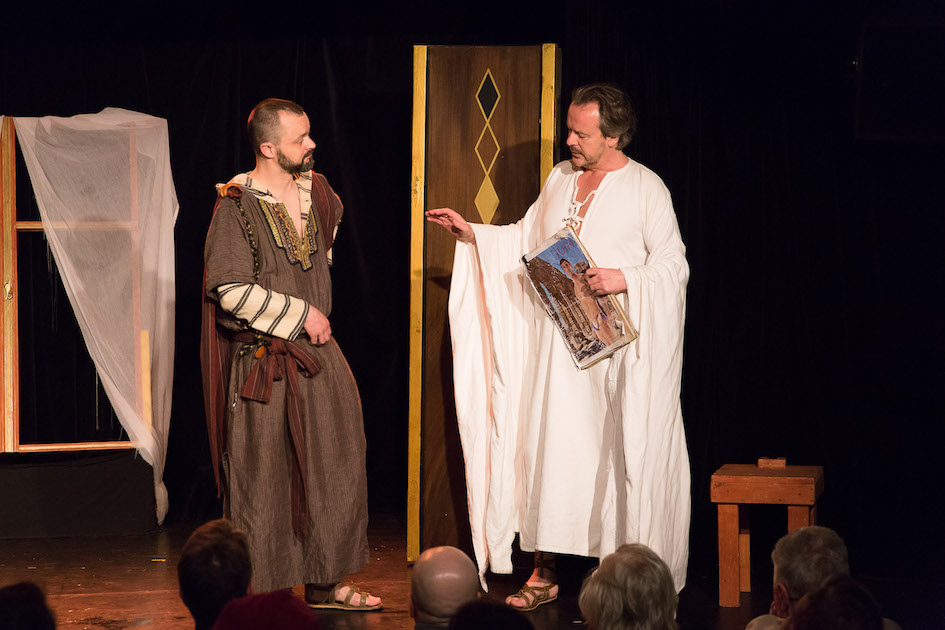Dans ce péplum revisité, Jésus fait du porte-à-porte pour vendre ses calendriers, se revendique comme l’inventeur du "Like" et change l’eau en vin millésimé. Super Mario s’invite à la célèbre course de chars, Ben-Hur vire sa cuti … Cette comédie est donc un show totalement déjanté, à la verve affutée telle l’épée d’un légionnaire.