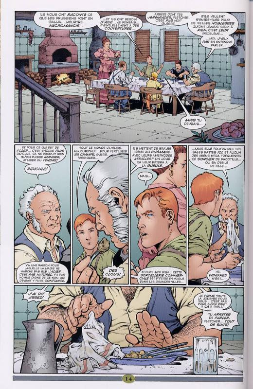 Critique : Vous avez aimé la série de romans Le Batard de Kosigan ? Vous avez adoré la série La brigade chimérique ? Vous êtes fans de deux ? Arrowsmith est fait pour vous. Pour les autres, il faut savoir que ce comic est une uchronie, ce genre qui propose une histoire alternative, où ici la magie et les créatures de fantasy (trolls, vampires, gobelins...) ont pris la place de la technologie (et donc d’un autre type de racisme...), avec ici un Witcher moderne en place au moment où éclate la Première Guerre mondiale. Du côté des Américains, qui ne sont pas vraiment les États-Unis, on décide de s’engager du côté des français (Gaulois), qui sont opposés à des Prussiens qui sont un peu plus méchants que dans la réalité, puisqu’un combat Bien/Mal semble vouloir se dessiner, ces derniers ayant un Roi nécromancien assez mégalo à leur tête. Mais dans ce premier tome, il s’agit essentiellement de l’entraînement et de l’arrivée au front du jeune Fletcher, qui va évidemment grandir rapidement au côté de son petit dragon. Si la carte du monde de la page de garde immerge totalement, il faut souligner que le système de magie (bateaux contres monstres marins, armes magiques plutôt que chimiques...) est également parfaitement mis en place, proposant un monde assez différent et très fantasy.