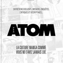 Le magazine ATOM, qui n’a pas (encore ?) de site internet mais dispose déjà d’une page Facebook sur laquelle on retrouve un trailer d’une minute, se présente comme un « trimestriel de culture manga », qui promet au lecteur « entretiens exclusifs, dossiers, enquêtes, critiques et décryptages » sur 132 pages. L’ambition du magazine est claire : dévoiler « La culture manga comme vous ne l’avez jamais lue ».