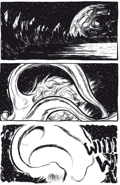 Lune du matin est le deuxième ouvrage chez Atrabile de l’italien Francesco Cattani après Barcazza. Catani se fait peintre des mœurs dans cet ouvrage sans concession qui met en scène petites frappes, escrocs et autres obsédés dans un monde qui ne tourne pas rond. Cette chronique sociale drôle et acide, dure sans être désespérée, tend un miroir déformant à la société italienne contemporaine. L’ouvrage est actuellement en lice pour le prix Révélation ADAGP / Quai des Bulles de Saint-Malo.