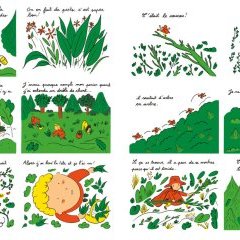 Critique : Pour organiser les histoires, l’autrice a choisi de les regrouper par période temporelle, en fonction des saisons de l’année (donc en quatre chapitres). Cette structure est on ne peut plus pertinente, tant la nature vit avec les saisons, tant elle se modifie en fonction des évolutions météorologiques et des différents cycles de la vie animale et végétale. Au sein même de ces chapitres, des histoires peuvent être chronologiquement très éloignées, et ces confrontations pour le moins fertiles construisent subtilement un discours sociologique, historique et surtout écologique. La nature impose son rythme au monde et à l’ouvrage et les hommes, qui la respectent, suivent ce mouvement et participent à cette harmonie. Il s’en dégage une véritable ode à ce contact essentiel, à cette écoute sensible d’un monde sauvage qui évolue doucement et tranquillement. Le choix de la première histoire peut juste se révéler dommageable : alors que les différents récits puisent leur force de leur authenticité, celui qui introduit le recueil est le seul qui adopte un ton ouvertement fantaisiste. Cette entrée déroute un peu et aurait pu gagner en pertinence et en poésie, placée un peu plus loin : le second degré qui en fait le sel ne peut véritablement prendre qu’à partir du moment où l’esprit du lecteur a parfaitement perçu l’entreprise de témoignage engagée par l’illustratrice. Bien entendu, cela ne gâche en rien plaisir de lecture que l’on ressent à travers le parcours de ces pages, et l’on se plonge vite dans le lyrisme propre à chaque histoire.