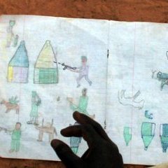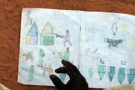 Des réfugiés prennent longuement la parole, des enfants dessinent des batailles, des petites filles fredonnent des chansons guerrières : un film de guerre, sans aucune image de guerre...