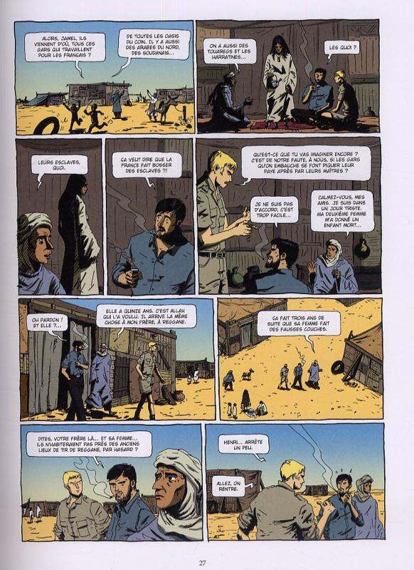 On reste pantois devant le témoignage de l’épouse d’un soldat irradié en Algérie dans les années 1960 et qui est placé dans un hôpital militaire sans possibilité de visite et avec un refus systématique de l’administration de transmettre la moindre information médicale… Sur le terrain, les soldats du rang et surtout les populations locales sont laissées dans l’ignorance la plus totale des conséquences de l’irradiation. L’amateurisme de l’armée affleure parfois, comme lorsque l’album relate l’épisode de panique générale qui suit un essai nucléaire en 1962. Les notes de fin d’ouvrage apportent des précisions bienvenues grâce notamment à des archives restées classifiées.
