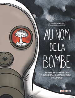 Au nom de la bombe est la réédition par Steinkis d’un titre paru chez Delcourt en 2010. Cet album constitue le produit de l’investigation du journaliste Albert Drandov, qui a mené un travail de fond basé sur des entretiens avec des vétérans, des témoins, des populations victimes et des militants. Chaque témoignage fait l’objet d’un chapitre distinct. On aurait aimé que le journaliste nous renseigne, au moyen d’une mise en scène de l’auteur, sur la façon dont ces déclarations ont été obtenues. Il n’en reste pas moins que ces faits démontrent l’ampleur du mensonge d’État sur la question des conséquences humanitaire de l’obtention par la France de la bombe atomique.