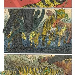 Ce comic, qui ouvre de fort belle manière la nouvelle collection de comics Casterman, est muet, coloré et complet. Tel un documentaire, il plonge dans le chaos Darwinien d’une époque, montrant que la Nature est tout sauf un endroit juste et idyllique, mais où la raison du plus fort ou du plus rusé est la seule qui importe. Une vision d’un Eden reptilien pénétrante de réalité, d’animalité et de violence.