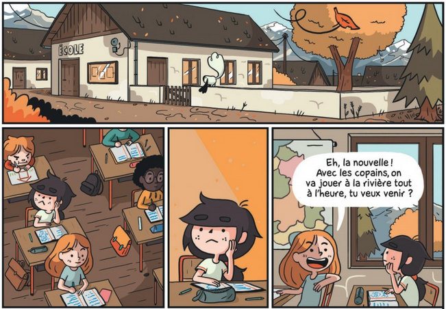 Après les tons jaunes et doux de l’été, voici venir des pages d’orangé, des feuilles mortes jusqu’au pelage du renard, en passant par les bogues et les taillis, l’ambiance automnale s’imprègne avec magie et délicatesse sur ce tome 2, qui fait revenir, rajeunir ou vieillir certains personnages, preuve que rien dans la vallée n’est figé. Les chiens un peu bizarres font désormais partie du décor, permettant d’ajouter un accent fantastique pas du tout désagréable voire bienvenu dans une atmosphère où le merveilleux n’hésite pas à se teinter de parodie.
