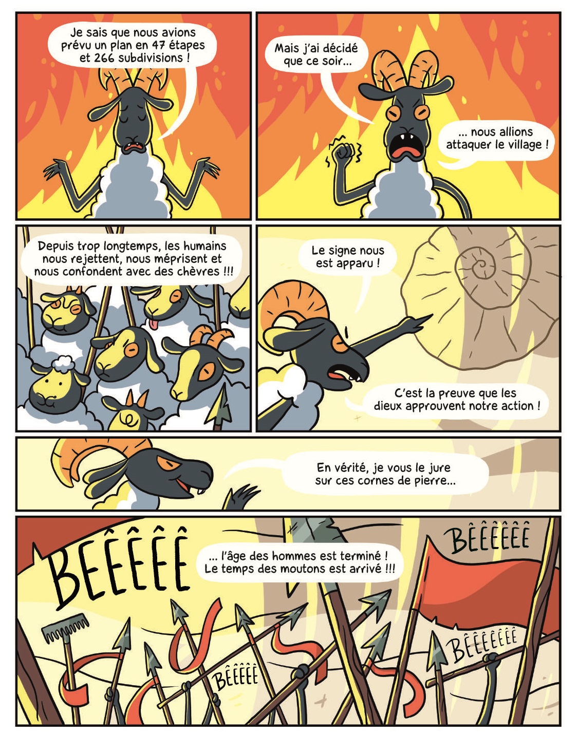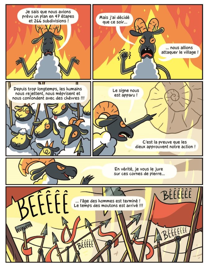 Troisième saison et donc nouvelle aventure pour Aubépine, qui commence à avoir non seulement de la bouteille mais aussi un paquet d’acolytes pour la suivre : Pelade, mais aussi le Renard furax, les Chevaliers Châtaigne, sans compter la famille qui peut s’inviter au cœur des péripéties... Comme les tomes précédents, l’humour est bien entendu au premier plan, toujours évident, franchement bien vu, avec des répliques sympathiques et des personnages facétieux. Le bélier prêt à tout pour conquérir le monde n’est pas sans rappeler la série Minus et Cortex, mais avec une multitude de moutons débiles, se rapprochant des classiques de l’humour anglais. Sans jamais se prendre au sérieux, l’héroïne incarne parfaitement cette ambiance décontractée qui conviendra aux plus grands comme aux tout petits.