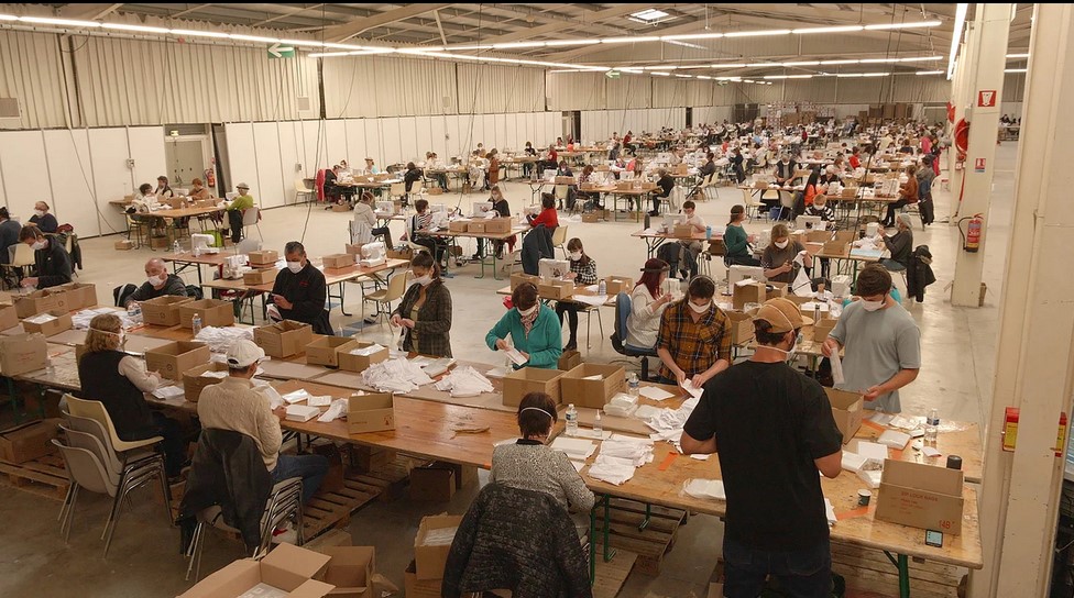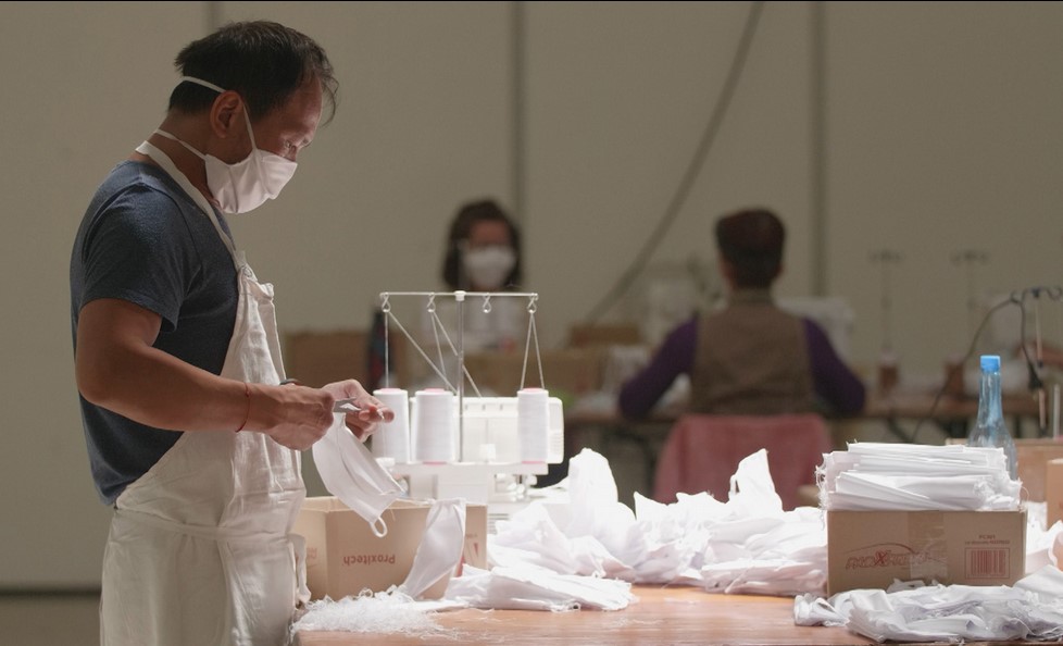 Critique : Quelques jours après le début de la pandémie de Covid-19, au printemps 2020, les masques manquent. C’est alors qu’une usine artisanale de Gironde, dirigée par un entrepreneur de PME du bassin d’Arcachon, Libero Mazzone, se lance pour défi de produire un million de ces précieux objets. À cet effet, il recrute des centaines de couturiers et (surtout) de couturières, qui travailleront d’arrache-pied dans le parc des expositions de La Teste-de-Buch. Au début, l’on est séduit par ce projet qui conjugue solidarité et insertion sociale : les témoignages des intervenants soulignent la nécessité de faire face aux pénuries de masques, rappelant en creux que la catastrophe sanitaire n’avait pas été anticipée par le gouvernement ; une SDF retrouve un toit et la confiance, d’autres évoquent une bonne ambiance générale. Mais à mesure que le film suit la cadence de cette usine improvisée, juxtapose des séquences répétitives sans vraiment changer d’angle pour appréhender son objet filmique (beaucoup de gros plans attendus des protagonistes disent l’effort), un sentiment de malaise se fait jour : la belle histoire, celle d’une générosité, s’efface devant le portrait d’un patron inflexible, jamais interrogé sur ses véritables motivations, dont les méthodes managériales et les injonctions martiales sur le mode "effort de guerre" font grincer des dents. Le même se réjouit bientôt que Disney envisage de lui commander des masques...