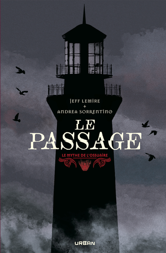 Avec James Tynion IV (Something is killing the children, The Nice House on the Lake) et Jeff Lemire, le comics investit le genre de l’horreur avec des œuvres puissantes, une manière d’exorciser une actualité angoissante. Dernier né de la fructueuse collaboration entre Lemire et Andrea Sorrentino, qui a déjà donné naissance aux séries Gideon Falls et Royal City ainsi que de Joker : killer smile et Primordial, Le mythe de l’ossuaire constitue un projet ambitieux. Le duo bâtit en effet une série d’histoires indépendantes qui se tiennent dans un même univers, chaque récit offrant une clé de lecture pour comprendre l’ensemble. Il s’agit, selon les mots de Sorrentino, d’établir « un univers cohérent et cohésif qui récompensera le lecteur prêt à s’investir complètement dans le projet en en lisant l’intégralité ». L’éditeur français Urban Comics a publié au printemps 2023, dans sa collection grand format, les deux premiers volumes de cette saga : Le passage et Des milliers de plumes noires, en attendant la publication d’au moins deux autres volumes.