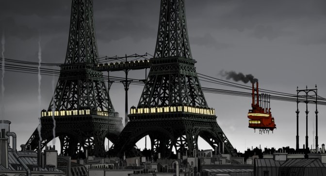 Première originalité qui ne manquera pas de séduire : Avril et le monde truqué est résolument steampunk (littéralement : punk à vapeur). Ce terme désigne les œuvres dont l’action se déroule dans la société industrielle du XIXe siècle. Au menu des ces romans, machines à vapeurs et révolution industrielle. Le genre steampunk s’est ensuite étendu, devenant une véritable esthétique et gagnant en conséquence tous les types d’arts, jusqu’au cinéma. Le dessin de Tardi au trait si particulier et son imagination foisonnante alliés à ce genre de proposition rétrofuturiste, le projet a déjà de quoi mettre en appétit. Mais les qualités du dessin animé ne s’arrêtent pas là.