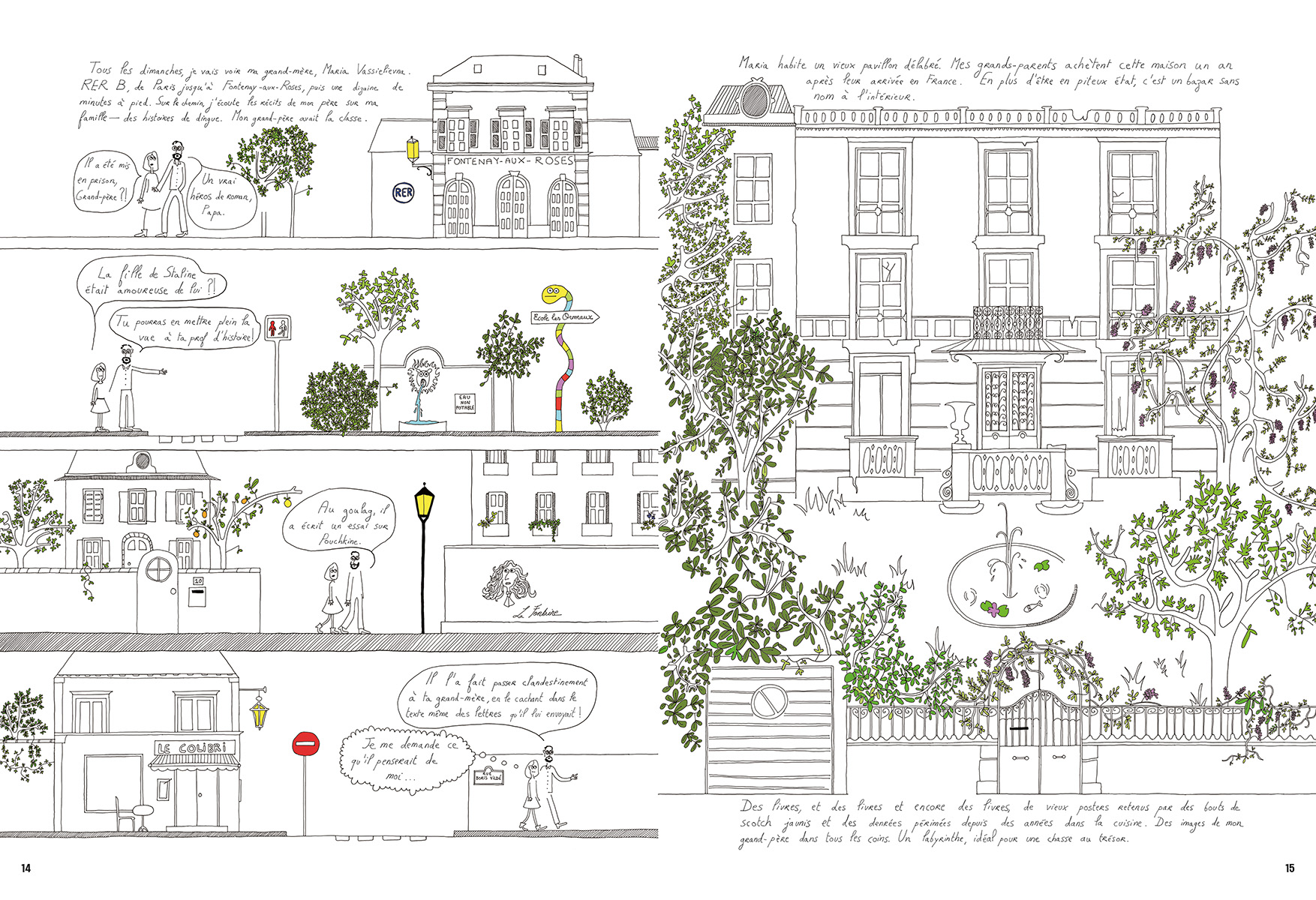 Résumé : Tous les dimanche, la jeune Emma Siniavski prend le RER avec son père pour se rendre à Fontenay-aux-Roses, dans ce vieux pavillon mal entretenu encombré de livres et d’objets variés, pour aller voir sa grand-mère, Maria Vassielievna. Un lieu idéal pour une chasse au trésor lorsqu’on est curieuse. C’est à travers les objets laissés par ses grands-parents qu’Emma reconstitue le fil de l’histoire de son grand-père, Andreï Siniavski, et de sa grand-mère, couple de dissidents soviétiques qui se sont exilés en région parisienne dans les années 1970. Une vie faite de joie, de débrouille et de répression.