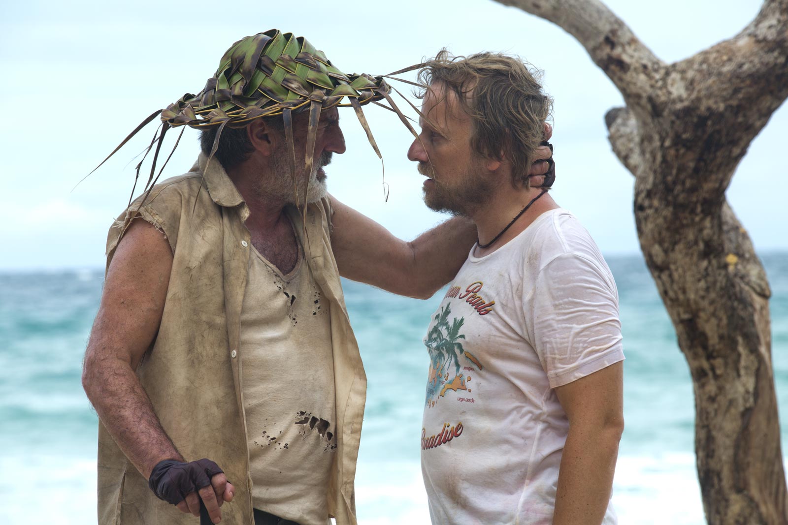 L’argument : Jean-Louis Brochard, escroc de la finance en fuite et William Boulanger, teinturier cocu tout juste quitté par sa femme, échouent sur une île déserte après un crash d’avion. Les deux naufragés, incapable de cohabiter, vont essayer de fuir cet enfer en espérant ne jamais se revoir. Mais l’île, pas aussi déserte qu’il n’y paraît, leur réservera une surprise qui les liera à tout jamais.