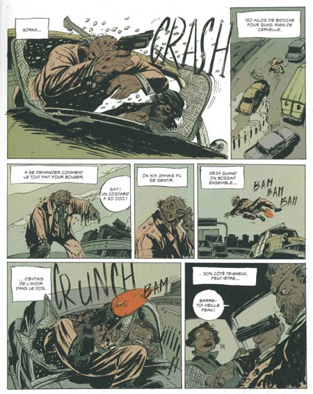 Résumé : Bang ! L’histoire d’un pacte entre mercenaires, « à l’amour, à la mort... » comme dit le sous-titre. Tout commence dans un taxi russe. Hiiii ! Crash !!! Bam ! Bam ! Bam ! En trois pages, on est dedans. Ça règle des comptes et ça change de personnages. Baoum ! Sblink ! Bronk ! Ça flingue à tout va et ça pète dans tous les sens. Et... mais ce ne serait pas de l’amour, là. Bratatatatatata ! … Bang !