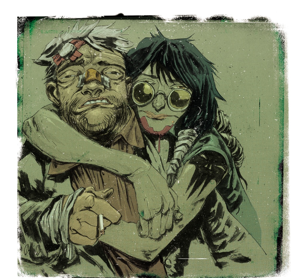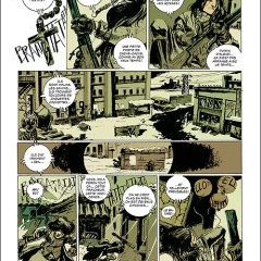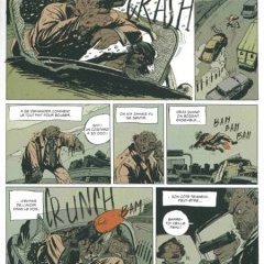 Et puis, il y a le dessin de Loïc Godart. La ligne est animale, nerveuse. L’ambiance verte/jaune pose bien l’atmosphère du propos. Et viennent le rouge et le brun pour titiller tout ça. Un quasi monochrome au parfum de souvenirs, taché d’hémoglobine. En gros, c’est crade et dynamique. Les scènes d’action décalquent nos mirettes et quand ça se calme, le trait se pose un peu, juste un peu.