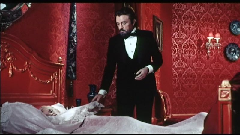 En effet, le terrifiant baron à la barbe bleue est un esthète qui collectionne les photographies de ses victimes ; photographies qu’il déforme au point de leur donner l’apparence de rorschach énigmatiques. C’est sur fond de décryptage d’une sexualité perverse que se déploie ainsi l’intrigue du film de Dmytryk. Par l’intermédiaire de l’épouse du baron, Anne, incarnée par la magnétique Joey Heatherton, le cinéaste va ausculter les troubles de son personnage, sous la forme d’une succession de révélations troublantes.