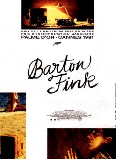 Résumé : Dans le New York de 1941, Barton Fink est le dramaturge à la mode. Le récent succès de sa dernière pièce de théâtre fait de lui une valeur sûre pour Hollywood. Convoqué par Wallace Beery, producteur dans toute sa splendeur, Barton Fink se voit confier l’écriture d’un scénario sur le monde de la lutte. Ce travail de commande va lui faire prendre conscience des rouages tortueux de la Mecque du cinéma et de l’angoisse de la page blanche.