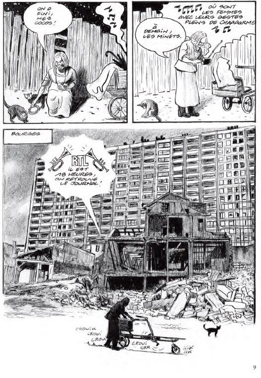 Au cœur du livre, il y a donc Marcel Bascoulard, une silhouette chétive et renfrognée qui sillonne Bourges avec sa brouette tricycle. Un artiste qui vit pauvrement, mais pense en abondance. Frantz Duchazeau restitue avec habilité ce double positionnement : Bascoulard n’est ni anti-social, ni marginal par provocation, il est simplement en bordure, à la lisière des choses, de la ville, de la société.