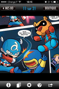 Cette application pourra ravir les fans de comics. Pour ce qui est du franco-belge ce sera plus compliqué et, de manière générale, il faudra quand même mettre la main au porte-feuille pour avoir les bandes dessinées que vous cherchez. Néanmoins, la lecture est vraiment agréable et le mode séquentiel vraiment intéressant.