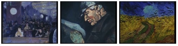 – VAN GOGH : Pour Van Gogh, se familiariser avec la nature ne signifiait pas qu’il avait suffisamment observé les choses de la nature. Ses altérations de formes et de couleurs étaient fonction de l’inquiétude qui le maintenait sans cesse au bord de la folie.