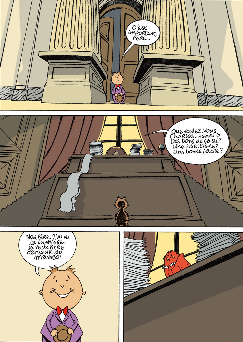 Résumé : Charles-Henri souhaite devenir le roi du mambo ; par les eaux, les airs, la terre… à la recherche de la belle Angeline, il tente de mener à bien ce rêve.